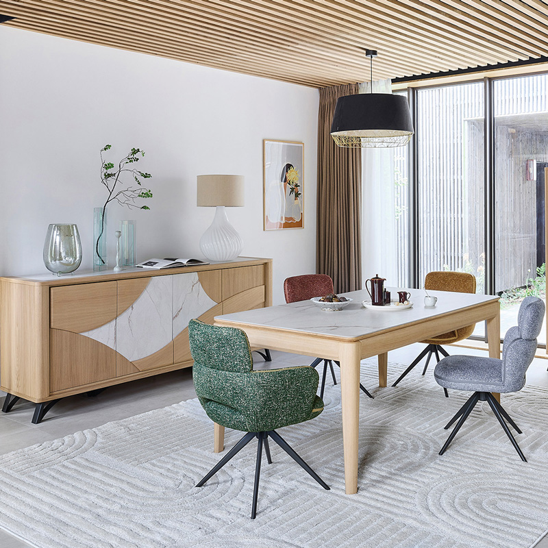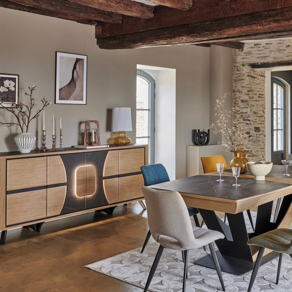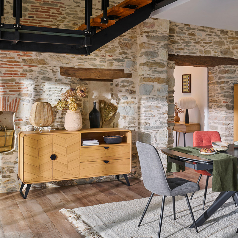 Nos créations de meubles intemporels et modernes, principalement en bois, sont réalisées au détail près.