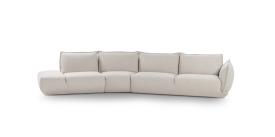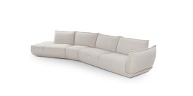 Le modèle se distingue par ses volumes sculpturaux mais doux. Cette caractéristique confère au produit un aspect attrayant et moderne, idéal pour ceux qui recherchent un design innovant sans sacrifier le confort. L'Éclair, disponible en versions 2 places et ½, 3 places et maxi 3 places, est fini avec un passepoil périmétrique qui embellit les dossiers et les accoudoirs, ainsi que des surpiqûres décoratives sur le devant de l'assise.