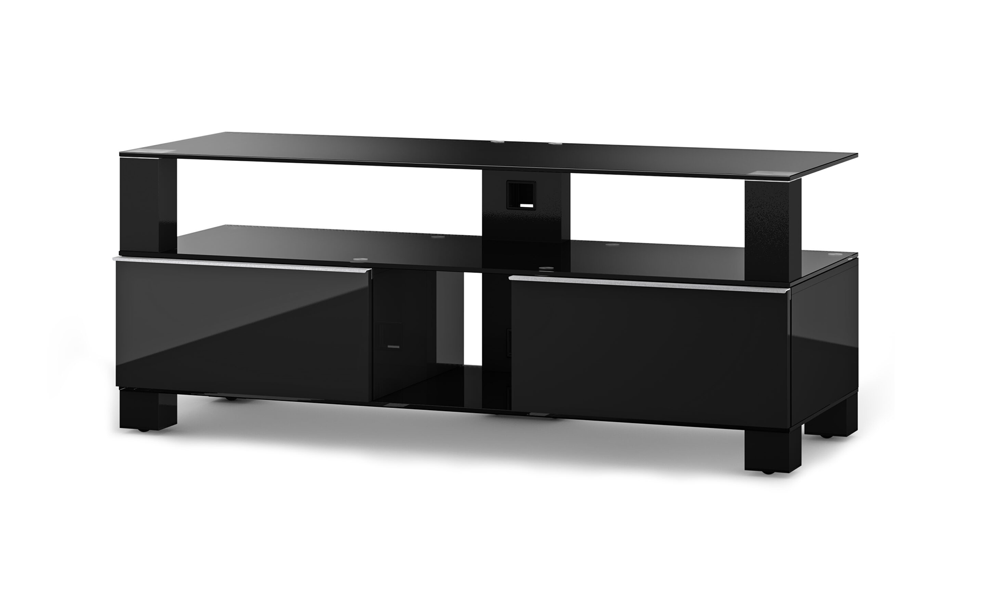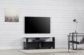 Le noir laqué donne à ce meuble TV un look tendance et moderne.
