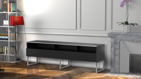 - Demi-porte abattante de couleur noire permettant de laisser la partie supérieure du caisson ouverte pour pouvoir utiliser sa barre de son et piloter ses appareils sans ouvrir le meuble.