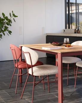 Afin de maintenir sa stabilité malgré sa taille imposante, la table dispose d'un pied supplémentaire qui s'intègre harmonieusement dans le design global. Les pieds de table en métal, enveloppé de bois, offrent une stabilité optimale.