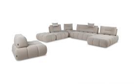 Rembourrage : coussins d'assise en mousse polyuréthane écologique recouverts de ouate 100% polyester. Housse amovible : impossible.